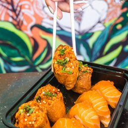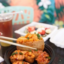 For a healthy and flavorful meal, try their Salads like the Spicy Ahi Wonton Salad or Cold Tofu Salad. And don't miss out on their Signature Donburi bowls, Sushi Inari Bombs, Belgian Mochi Waffles, Hawaiian Acai Bowl, and a selection of refreshing beverages including Vietnam Iced Coffee and Iced Matcha Latte.